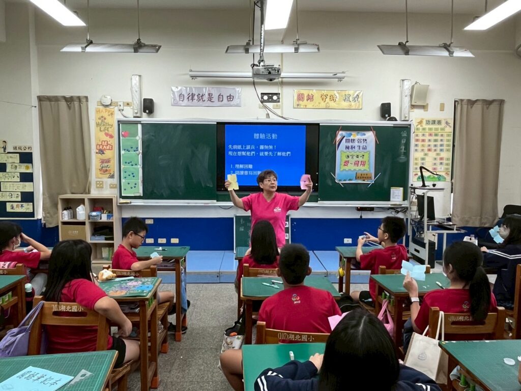 在活動的最後,我們邀請學生一起討論:「如果班上有學習障礙的同學,我們可以怎麼幫助他?」他們的回應真誠又溫暖。有人說:「幫助學習障礙可以怎麼幫他教他,告訴他怎麼做。」有人說:「我願意教他算數。」還有同學說:「有學習障礙沒關係,你有別的優點。」甚至有人提到:「給我們看學習障礙的人看到寫出來的字的時候,讓我們可以體會到學習障礙的人們的感受。」這些話語雖然簡單,卻充分展現了孩子們的理解與同理。